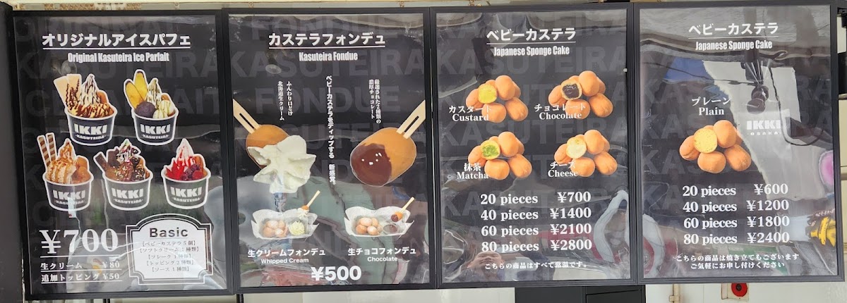 Overall, the menu at Ikki Kasuteira Shinsaibashi is a sweet journey through some of the finest Japanese-inspired desserts, each one meticulously crafted to bring a blend of flavors and textures that will leave you craving more. Whether you're in the mood for something light and creamy or rich and chocolatey, the menu provides something for every palate.