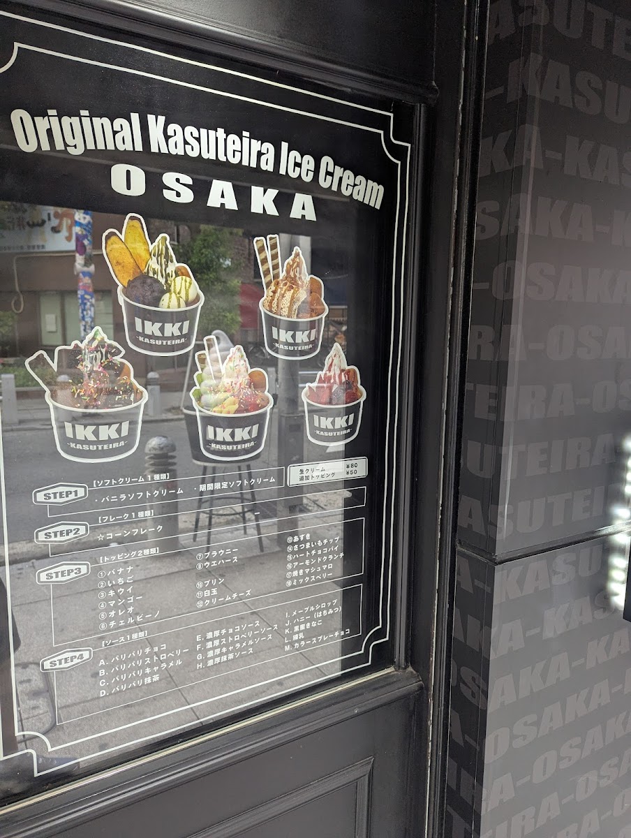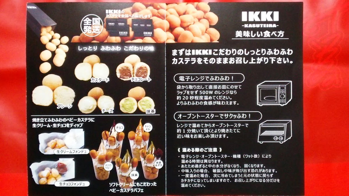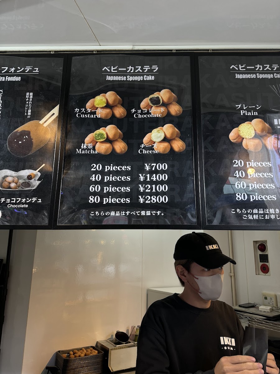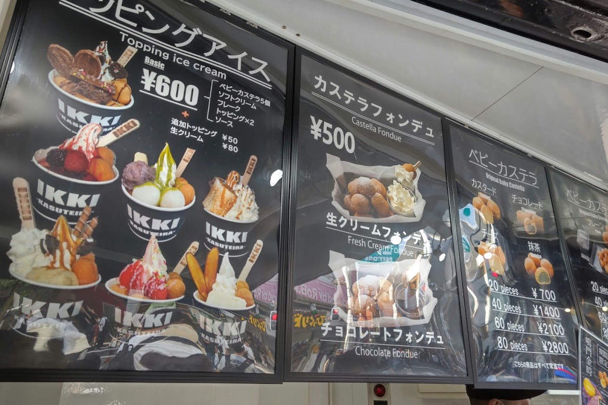 The menu at Ikki Kasuteira Shinsaibashi offers a delightful selection of sweet treats that perfectly capture the essence of Japanese dessert culture. One of the standout offerings is the Custard, a smooth and creamy treat that delivers a rich, comforting flavor. For chocolate lovers, the チョコ (Choco) is a must-try, featuring a luscious chocolate flavor that satisfies every craving.
